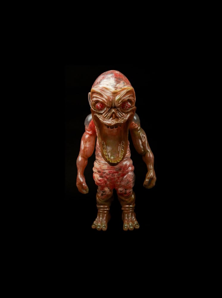 One year ago I started painting my first batch of Kronus, which is why I’m celebrating this year with this new style. One rainy December night I began this new style and colorway for Kronus. From all the thousands of ideas swirling around in my head, trying to understand and study which would be best for each release… I’m still inspired by Halloween, and mixed with the strange atmosphere of sporadic December rain, this is the result. I tried to give it an effect I’d never seen applied to Sofubi before. I liked how this technique turned out on the inside, and I repeat, no one has ever applied it before…